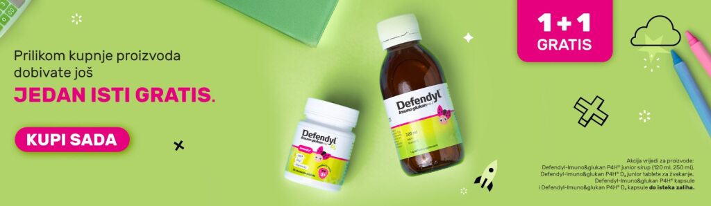 Prilikom kupnje Defendyl-Imuno&glukan P4H® odabranih proizvoda, dobivate ISTI proizvod gratis na poklon. Besplatni proizvod stiže automatski uz Vašu narudžbu te se ne prikazuje unutar košarice! Akcija traje od 03.11.2025. do isteka zaliha.